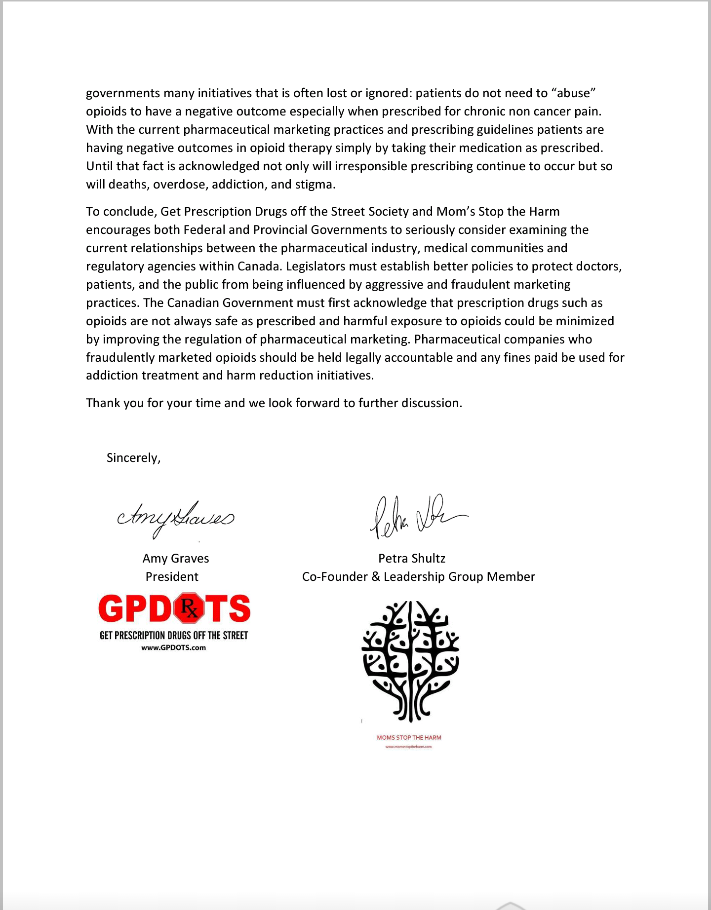 Thank you Amy, That is a thorough, well spoken letter. Canada really needs a big lawsuit against the fraudulent claims of Big Pharma to wake people up to the crisis and to fund real recovery from addiction, not just methadone treatments— which adds another need for drugs. Once again, who benefits — the drug manufacturer. Thanks for your work. Darlene Karamanos– the person who gave you your first donation in Kentville 🙂